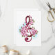 Pink treble clef with delicate, detailed pink Japanese cherry blossoms against white background painted over with light blue paint. Blooming pink sakura.
