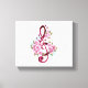 Pink treble clef with delicate, detailed pink Japanese cherry blossoms against white background painted over with light blue paint. Blooming pink sakura.