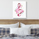 Pink treble clef with delicate, detailed pink Japanese cherry blossoms against white background painted over with light blue paint. Blooming pink sakura.