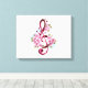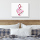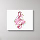 Pink treble clef with delicate, detailed pink Japanese cherry blossoms against white background painted over with light blue paint. Blooming pink sakura.