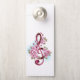 Pink treble clef with delicate, detailed pink Japanese cherry blossoms against white background painted over with light blue paint. Blooming pink sakura.