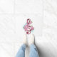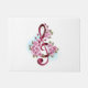 Pink treble clef with delicate, detailed pink Japanese cherry blossoms against white background painted over with light blue paint. Blooming pink sakura.