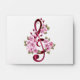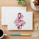 Pink treble clef with delicate, detailed pink Japanese cherry blossoms against white background painted over with light blue paint. Blooming pink sakura.