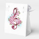 Pink treble clef with delicate, detailed pink Japanese cherry blossoms against white background painted over with light blue paint. Blooming pink sakura.