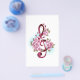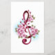 Pink treble clef with delicate, detailed pink Japanese cherry blossoms against white background painted over with light blue paint. Blooming pink sakura.