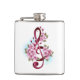 Musical treble clef notes with Sakura flowers Hip Flask