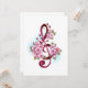 Pink treble clef with delicate, detailed pink Japanese cherry blossoms against white background painted over with light blue paint. Blooming pink sakura.