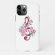 Pink treble clef with delicate, detailed pink Japanese cherry blossoms against white background painted over with light blue paint. Blooming pink sakura.