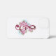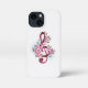 Pink treble clef with delicate, detailed pink Japanese cherry blossoms against white background painted over with light blue paint. Blooming pink sakura.