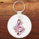 Pink treble clef with delicate, detailed pink Japanese cherry blossoms against white background painted over with light blue paint. Blooming pink sakura.