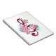 Pink treble clef with delicate, detailed pink Japanese cherry blossoms against white background painted over with light blue paint. Blooming pink sakura.