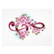 Pink treble clef with delicate, detailed pink Japanese cherry blossoms against white background painted over with light blue paint. Blooming pink sakura.