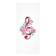 Pink treble clef with delicate, detailed pink Japanese cherry blossoms against white background painted over with light blue paint. Blooming pink sakura.