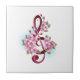Pink treble clef with delicate, detailed pink Japanese cherry blossoms against white background painted over with light blue paint. Blooming pink sakura.