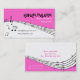 Musician music pentagram business cards hot pink, white, black, featuring a vector pentagram with the treble clef and notes. Great for a musician, composer, songwriter.