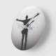 This circular aluminium keychain showcases a striking black-and-white musician silhouette with outstretched arms and a unique glitch-style effect.