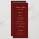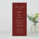 Islamic Muslim Burgundy Red Wedding Menu for the guests. Minimal, elegant design menu card that can be used for Mehndi, Walima and other ceremonies. There are two gold script fonts on the front of the card. You can edit all the halal food information available on the front.