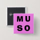 A bright and bold pin button, in pink with black text design of the word 'muso' (a musician or music lover). The statement badge makes a sound choice for music lovers.