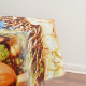 I am very pleased with this purchase. The quality is good, it is heavy and the image decorating it is brilliant and very eye-catching. When I first laid eyes on this tablecloth, still folded and in the transparent covering, it brought a smile to my face and I knew right away it was a good choice. A few days later my wife replaced our old tablecloth with this little gem and was quite satisfied. She noted that it is thick and fits the table very well with just enough hang over (although our dining table is extended by a traditional leaf which we keep in place even if we are not having guests over) and stays put instead of blowing all over the place. The image decorating this tablecloth is brilliant and very eye-catching. It looks even better than it appeared online.