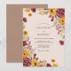 This design features a rich palette of burgundy and mustard yellow blossoms, perfect for a seasonal harvest event. Hand-painted roses and delicate poppies are clustered with earthy foliage against a warm cream backdrop. The aesthetic evokes a sense of cozy elegance and rustic charm. It provides a sophisticated and natural floral style for a special day.