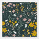 A beautiful hand drawn mustard and earthy wildflower illustrations accompanied by beetles and bees. A Bohemian wildflowers design inspired design using a neutral colours on a dark blue background. An ideal design for home decor, personalised gifts and office decor. Perfect for anyone who loves hand drawn floral illustrations, dark and moody floral and botanical themed art.