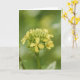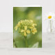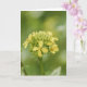 Delicate yellow mustard plant petals with a soft focus background on a greetings card