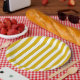 Mustard Yellow and White Vertical Stripes Paper Plate