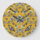 Mustard Yellow & Navy Birds, Butterflies & Flowers Large Clock