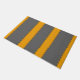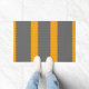 Mustard yellow vertical stripes, stitched on grey doormat