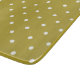 Pattern of white polka dots on a mustard yellow background. The dots are evenly spaced, creating a simple, vintage, playful aesthetic.
