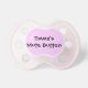 This lil binkie so cute!! We use it when we go places to show our new baby off!! Its ALWAYS a big hit & everyone "awes" when they see her with it! Printing Perfect! Looks identical to the picture of my personalized design!