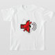 The t-shirt feels and looks great quality, a good thick cotton. It will be a little big for my son, but that means he will be able to wear it and not out grow it too soon. The print was as described on the order when personalised. True size, shape and colour T-shirt- thanks.