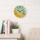 Muted Aqua and Gold Watercolor Effect Large Clock