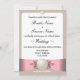 Invite your guests to your wedding with a beautiful custom invitation. This flat card features a pretty white pearl and pink blush ribbon design on a neutral tan background. The card has front and back full colour printing. Although this invitation would be a wonderful touch to any season, the pastel pink and brown colours would beautifully fit a spring wedding. In addition, the shiny pearls, sand colour of the tan, and coral colour of the blush ribbons would perfectly suit a beach wedding. All of the important information regarding your wedding is elegantly displayed on the front of the invitation. Be sure to include the names of the bride, groom and venue. The date and location where the ceremony will be held will also appear on the front of the card. Make your invitation personal with two photos of the happy couple on the back or the card. The bride and grooms names as well as the wedding date may be included on the back of the card.