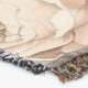 A quality printed throw has its advantages. This is a much finer weave throw than its loopier cousins, and though lighter, it is worth the investment for custom room accessorizing. The back is much prettier than the typical brown, and the fringe on the long sides very vivid, the selvage nicely done. Before photographing, I washed the throw in cold water, delicate, with a thicker woven throw the same size. On tumble dry low, this throw was dry in half the time as the other. This is a very practical quality if you use throws for furniture covers or to wrap up in frequently. The sleekness of the fabric makes it a great layer for accenting or protecting without the feeling of sitting on too much stuff. Perfect for napping or when you feel a light chill coming on. The color printing is beautiful and on this fabric, matched the design and color of my Photoshop image. This is an advantage for blending room fabrics and colors. The fringe on the short sides prints the colors from the design image and therefore varies from the side fringe. I streaked a white fractal line through the plaid pattern to give the illusion of weaving. This printed as crisp as an illusory thread, and put some white in the short side fringe, showing another advantage of print vs loomed- for artistic purposes, line lines, detail, and color integrity can be planned and preserved. My loomed throws have color limitations and more of a needlepoint texture. Print throws reproduce an exact image. The throw felt a little stiff straight out of the package, but this went away in the first delicate wash. Of course I searched the wash water for ink or bleeding and there was none.