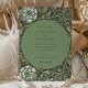 This elegant wedding invitation beautifully captures the essence of the Art Nouveau era with its exquisite use of curvilinear forms and natural floral elements. The sage green background provides a tranquil canvas for the intricate silver filigree designs that blossom across the card. The metallic sheen of the silver against the muted green tones creates a serene and sophisticated atmosphere. Each floral element is delicately detailed, suggesting a blend of sophistication with natural beauty. The design conveys a sense of growth and unity, ideal for the joining of two lives in marriage. This invitation is a perfect choice for couples seeking a blend of historical artistry and contemporary elegance for their wedding day.