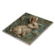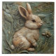 Muted Green Bunny Rabbit and Flowers Faux Relief Tile
