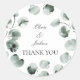Muted Green Eucalyptus Scripted Modern Thank you Classic Round Sticker