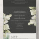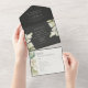 Muted Green Foliage Personalised Wedding All in One Invitation. this tri-fold Invitation includes a tear away RSVP postcard and Save the date with website and other details - a perfect way to cut down on paper and cost - an all in one wedding set from Ricaso - a stunning and delicate foliage design on a grey background  - delightful elegant invite you can easily change text to suit your own personal requirements  -  Other coordinating products are available in this range
