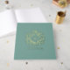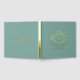 Wedding guest book or guest signature book featuring a hand drawn leaf circle monogram art in gold on a beautiful muted green blue. Customise with your own initials. Ideal to leave in a reception area for guests to give you words of advice or to circulate around your reception tables, makes a great keepsake from your marriage day. Other matching items and colour options available. Leaf circle crown hand drawing by Sarah Trett exclusively for www.mylittleedenweddings.com