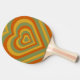 Modern ping pong paddle with retro seventies-inspired heart design. Heart layers in muted colours, orange, red and green.