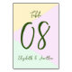 Wedding collection with muted pastel mint, yellow and purple background with olive green text