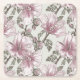 Muted Pink Hibiscus Flowers Pattern Square Paper Coaster