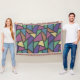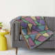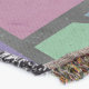 A quality printed throw has its advantages. This is a much finer weave throw than its loopier cousins, and though lighter, it is worth the investment for custom room accessorizing. The back is much prettier than the typical brown, and the fringe on the long sides very vivid, the selvage nicely done. Before photographing, I washed the throw in cold water, delicate, with a thicker woven throw the same size. On tumble dry low, this throw was dry in half the time as the other. This is a very practical quality if you use throws for furniture covers or to wrap up in frequently. The sleekness of the fabric makes it a great layer for accenting or protecting without the feeling of sitting on too much stuff. Perfect for napping or when you feel a light chill coming on. The color printing is beautiful and on this fabric, matched the design and color of my Photoshop image. This is an advantage for blending room fabrics and colors. The fringe on the short sides prints the colors from the design image and therefore varies from the side fringe. I streaked a white fractal line through the plaid pattern to give the illusion of weaving. This printed as crisp as an illusory thread, and put some white in the short side fringe, showing another advantage of print vs loomed- for artistic purposes, line lines, detail, and color integrity can be planned and preserved. My loomed throws have color limitations and more of a needlepoint texture. Print throws reproduce an exact image. The throw felt a little stiff straight out of the package, but this went away in the first delicate wash. Of course I searched the wash water for ink or bleeding and there was none.