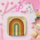 Retro rainbow design. Rainbow layers in muted colours, orange, red and green. Groovy retro rainbow gifts, home decor.