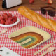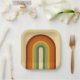 Muted Retro Groovy Layered Rainbow Square Paper Plate