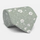Muted Sage Green And White Wildflower Patterned Tie