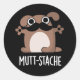 Mutt-stache Funny Dog Moustache Pun Dark BG Classic Round Sticker