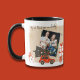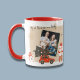 My 1st Christmas As A Daddy Photo Winter Holidays Coffee Tea Mugs features your favourite photo surrounded by a baby holding a gift, a red car carrying a tree and a gift. Perfect for Christmas for a new father. Designed by ©Evco Holidays www.zazzle.com/store/evcoholidays
