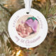 My 1st Christmas Baby`s First Pink Photo Ceramic Ornament. Photo in the round frame and text in a pink trendy script. Sweet Christmas keepsake for baby`s first Christmas.